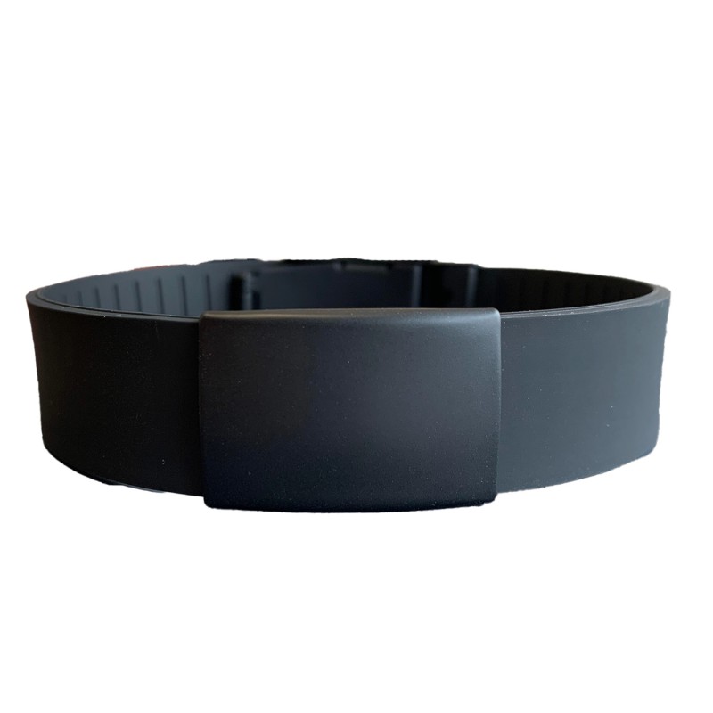 tlf. 20 33 76 60BeSafe er et smart armbånd i silikone og med sort metal plade, hvor der er plads til at skrive personlige oplysninger.