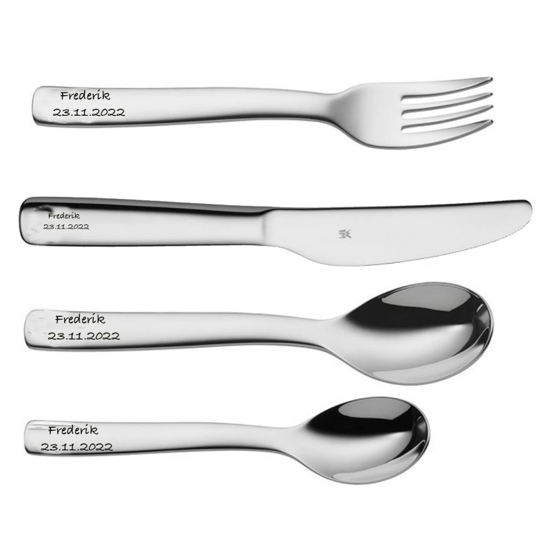 Et fint børnebestik til den lille ny der skal døbes eller som skal til at lære at spise selv. Med den personlige indgravering er det en sikker gave som vil holde i mange år.