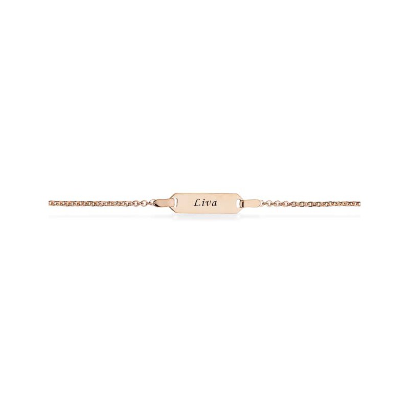 Elegant børnearmbånd i 8 kt guld fra det danske smykkehus Scrouples. Armbåndet har en smuk kæde og en aflang plade med flotte hjørnedetaljer.
