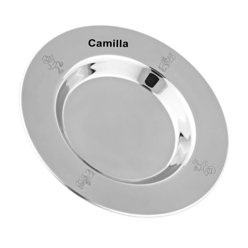 Børnetallerkenen måler 18 cm i diameter og har en lille fordybning. Børnetallerknen har 4 indgraverede tegninger af Bamse & Kylling og der kan indgraveres med de ønskede data rundt på kant. Ved indgravering af navn samt dato, vil den blive udført i 2 linjer under hinanden, hvis der ønskes andre forme for indgravering, så skriv eller ring gerne. Vi anbefaler skrifttype Ariel eller cosivia til denne barn tallerken og teksten vil blive lasergraverede og fremstå i sort farve. Den kommer i fin æske så den er klar som gave til den mindste.