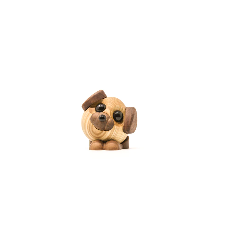 Den store hund er altid klar på sjov og leg. Han logrer ofte med halen og leger gemmeleg bag sine store ører.Buddy er en bedårende træfigur i to dele. Formen og de bevægelige ører og hale gør at han kan animeres til mange forskellige udtryk.Sammen med den nuttede hundehvalp Molly, vil hundene altid huske dig på at have et legende og positivt sind... hver eneste dag. Her kan du få lasergraverede din personlig tekst på bagside. Teksten vil blive brændt ned i træet og fremstå i let sort farve. Her anbefaler vi Ariel som skrifttype og ca 25 tegn fordelt på 2 linjer. En perfekt personlig gave til barnedåb eller som en sjov ting til kontoret. Leveres i fin gaveæske, så den er klar som gave.