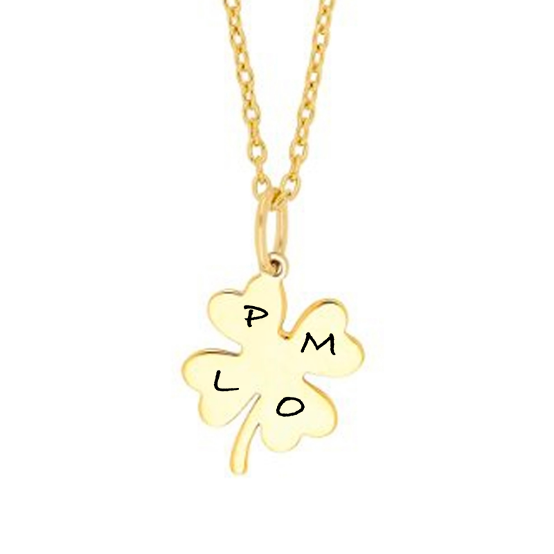 Kender du en der skal have lidt held og lykke med på vejen ? Vores 8 kt guld vedhæng firkløver kan lasergraveres med din egen tekst på hver vinge. Graveringen vil fremstå i let sort og der kan være 1 tegn på hver vinge. Her kan alle vores skrifttyper anvendes. Måske er det til verdens bedste veninde eller forbogstaverne for hver barn. En sød gaveidé til en der bare har brug for lidt helt. Firkløver vedhænget leveres med 45 cm forgyldt kæde og i æske, så det er lige til at give som gave.