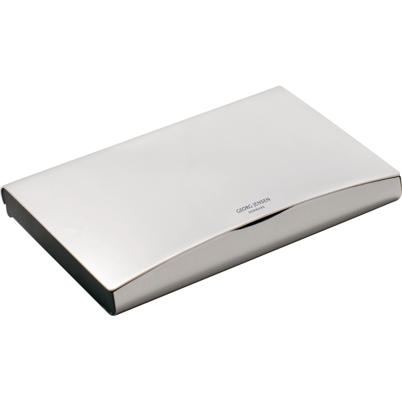 Denne stilfulde og elegante kortholder fra Georg Jensen, fremstillet i rustfrit stål, er den perfekte firmagave til både medarbejdere og kunder. Kortholderen, der måler H: 7 mm, B: 97 mm, D: 60 mm, kan lasergraveres med jeres firmalogo på forsiden, hvilket giver en eksklusiv og professionel præsentation af jeres brand.