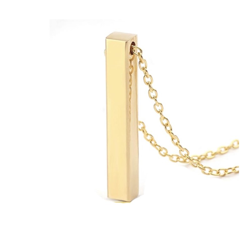 Det er rigtig populær de nye stav smykker og med mulighed for gravering af navne eller din egen tekst på alle 4 sider, kan den gøre meget personlig. Smykket måler 30 x 5 mm og leveres med 42 cm forgyldt kæde. Smykket har en kraftig forgyldning som gør at den ikke bliverslidt hurtig i forgyldningen. Ønsker du at få lavet et tegn så skriv feks. ( hjerte ) Smykket er meget elegant og yderst populær og den perfekte