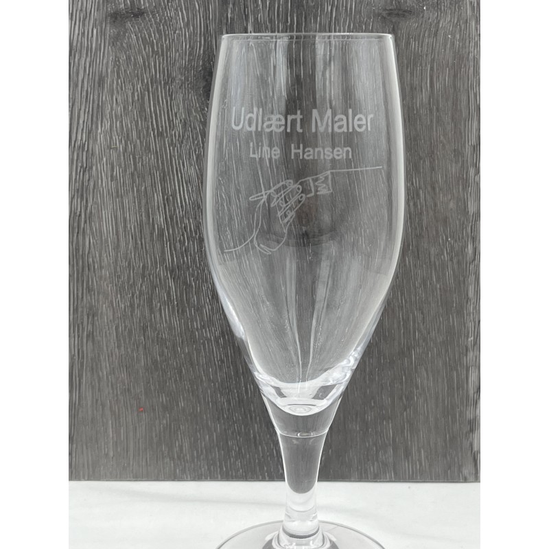 Øl glasset er en perfekt gave til ham eller hende der lige er blevet udlært eller måske som jubilæumsgave. Ølglasset er præet med maler motiv, hvor efter du selv kan tilføje et navn og evt en dato og derved gør det helt unikt og personligt.