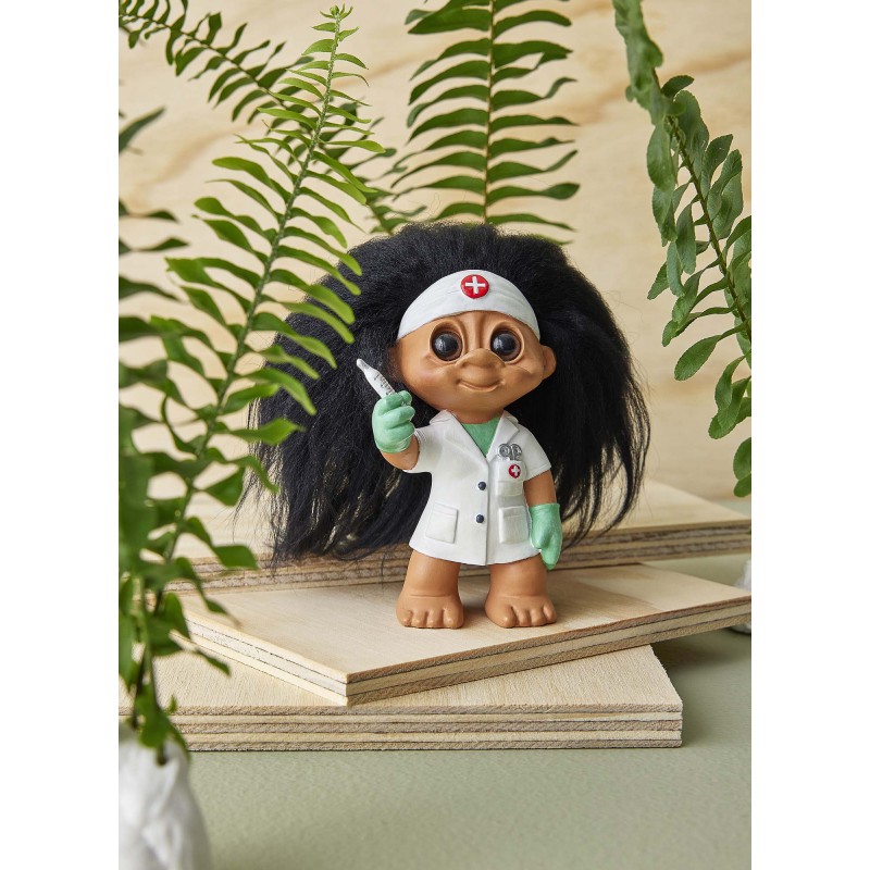 I hjertet af Lykketrolde-universet findes en helt særlig figur, Sygeplejersken. Hendes hænder helbreder på næsten magisk vis.Med et blik, der ser mere end de fleste, drager hun omsorg for alle patienter. Sygeplejerskens kærlige indsats er nøglen til hurtigere heling.Hun er vores hverdagshelt, når sygdommen rammer. Takket være hende kan vi skimte lysere tider forude. Den lille trold kan lasergraveres på bagsiden og vi anbefaler ca 15 tegn og Ariel som skrifttype.