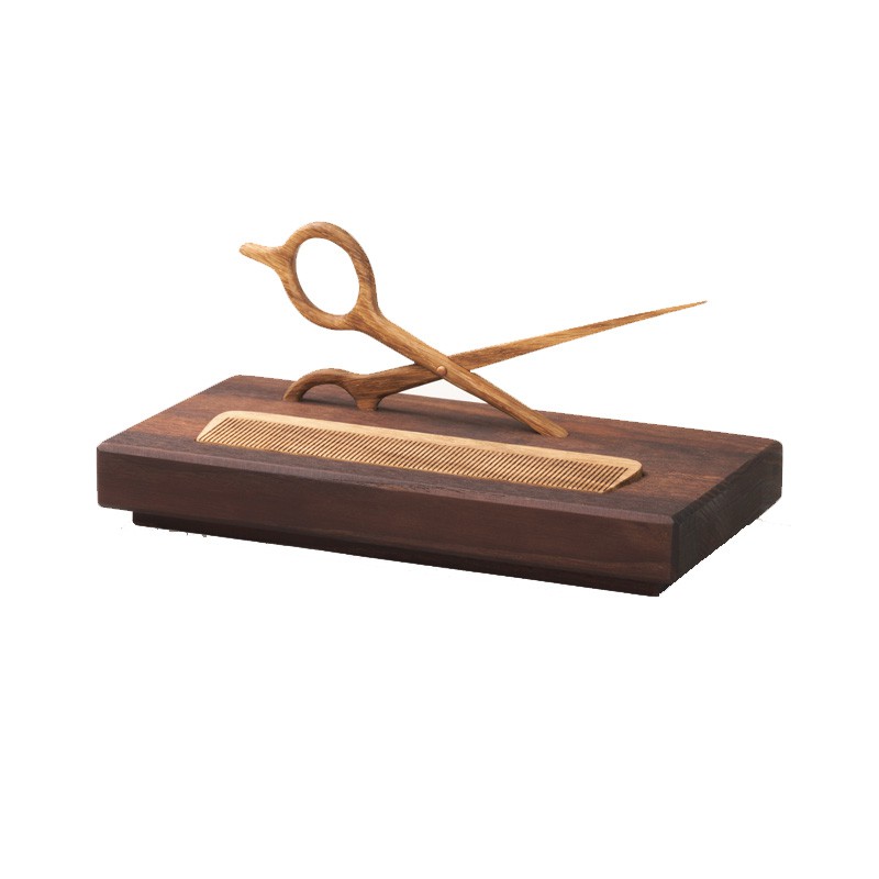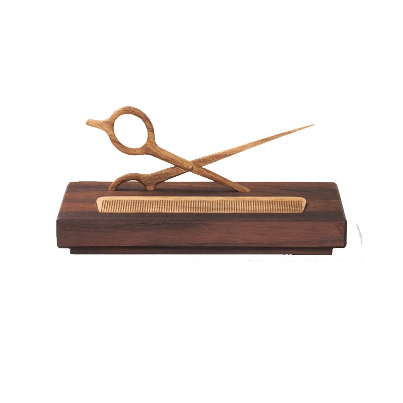 Flot og anderledes træ design til dig der har taget en erhversuddannelse eller måske fejre jubilæum som Frisør. Den er lavet i eg og ask og har udskåret saks og kam og ligger i en mørk plade. I bunden af den løse plade er der skrevet Maya Soele, som er hende der har designet de flotte træ figurer. Den måler 9 x 18 cm og kan indgraveres på siden eller i bunden. Her kan der ca være 30 tegn fordelt på 2 linjer og teksten vil blive lasergraverede ned i træet og stå i samme farve. Det bliver læseligt, men kan ikke laves i farver. Her anbefaler vi Ariel som skrifttype.