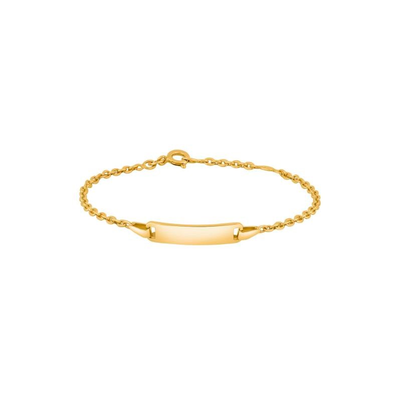 Lille fint børnearmbånd med plade, hvor der kan lasergraveres foran på pladen. Teksten vil fremstå i let sort farve og her anbefaler vi ca 10 tegn. Børnearmbåndet måler ca 17 cm i længden og har en forgyldt overflades. En forgyldning vil man slide af med tiden og kan give en sølv skær. Vi anbefaler Ariel eller Bradley som skrifttype.