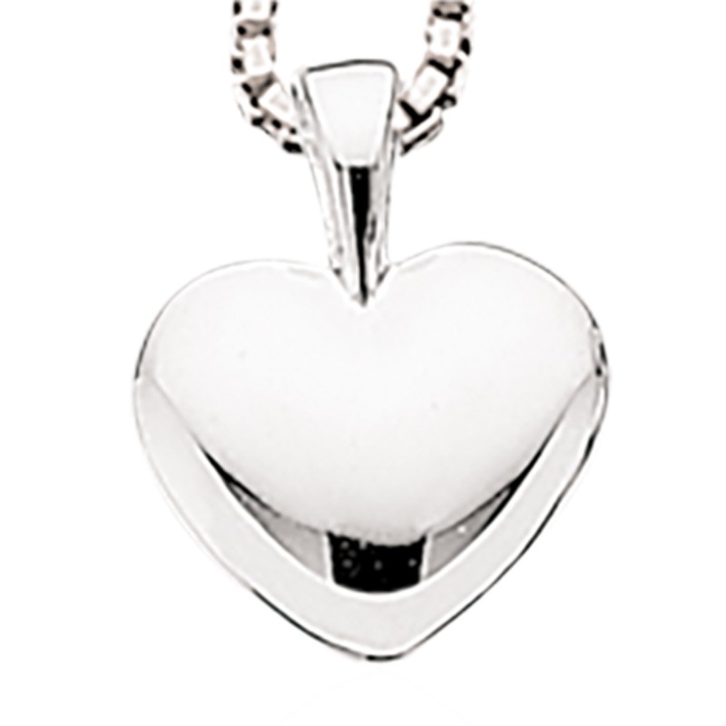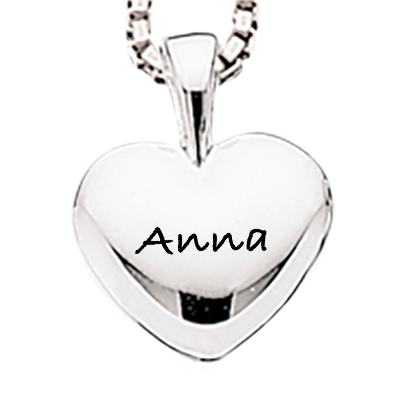 Et lille fint fladt hjerte i sølv med 42 cm kæde - Smykket kan lasergraveres med en enkelt tekst på begge sider.