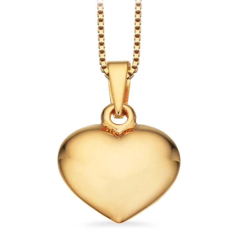 8 kt guld hjerte fra Scrouples, med en dimensionerne 11 x 13 m. Hjertet kan lasergraveres med din personlig tekst foran. Her anbefaler ca 10 tegn på 1 linje. Teksten vil fremstå i let sort farve og leveres med en forgyldt anker kæde som måler 42- 45 cm. Hjerte smykket leveres i fin æske, så den er klar som gave.