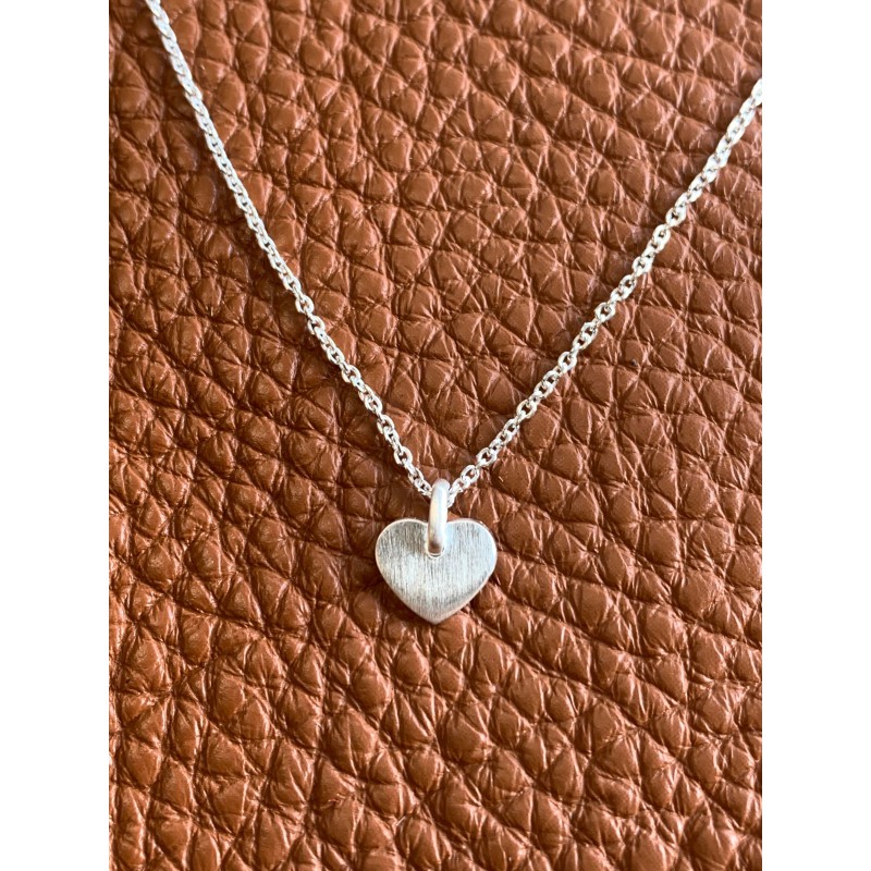 Enkelt og stilfuldt Lovetag charms hjerte smykke i sølv.