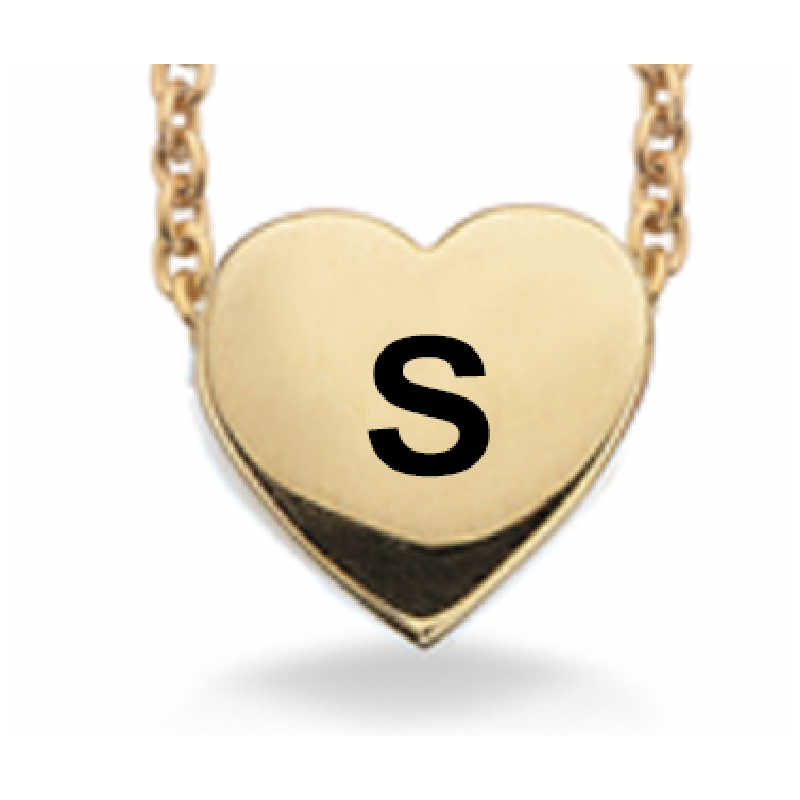 Lille og enkelt forgyldt hjerte som måler 7 x 6 mm. Det forgyldte hjerte leveres med forgyldt kæde. Hjertet kan lasergraveres med 1 tegn. Bogstavet vil fremstå i let sort farve. Leveres i æske, så den er lige til at give som gave. En fin gave til barnedåb eller til en du holder af.