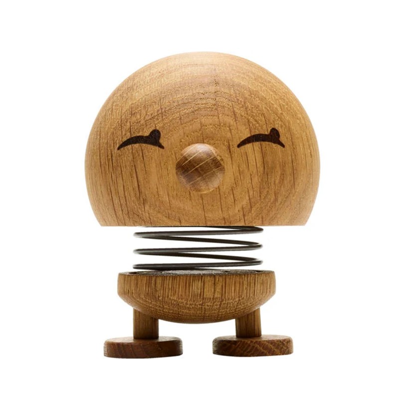 Den glade lille Hoptimist som er lavet i eg, kan lasergraveres på bagsiden med din personlige tekst. Teksten vil blive brændt ned i brændt ned i træet og teksten kan variere lidt i farve, alt efter hvordan træet er. Her anbefaler vi Ariel som skrifttype og ca 30 tegn fordelt på 3 linjer. Da træ er et naturmateriale kan der være knaster og områder med lysere eller mørkere træ, og vi kan derfor ikke garantere at produktet har det præcise udtryk som billedmaterialet viser. Den sjove lille figur er måler H: 10,5 cm x D: 7,5 cm og med de glade øjne og den lille tap på hovedet kan den gøre meget glæde i mange hjem. Den leveres i æske, så den. er klar som gav