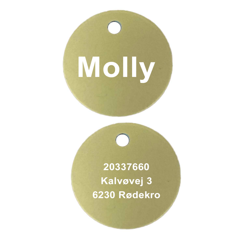 I praksis betyder dette, at din hund som minimum skal bære et tegn, der viser dit eller dine telefonnumre. Husk at angive +45 eller 0045 foran nummeret. Det er ikke kun ved rejser i udlandet, at dette er nødvendigt, men også hvis nu din hund slipper væk herhjemme, og så bliver fundet af en turist, der typisk skal trykke 0045 først ved opkald til danske numre. Vi graverer og leverer dit hundetegn i dag. Prisen er inkl. gravering.