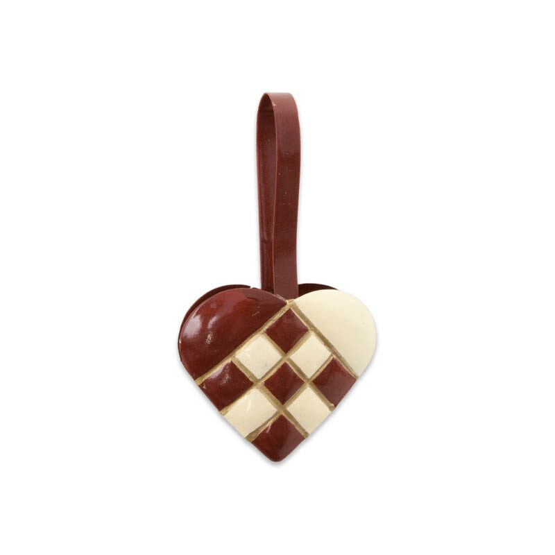 Dette smukke julehjerte er designet i et rustikt og håndværksmæssigt udtryk, der giver hvert enkelt hjerte sin egen unikke charme. Overfladen har bevidst små variationer og et lettere slidt look, hvilket er en del af hjertets karakter og design.