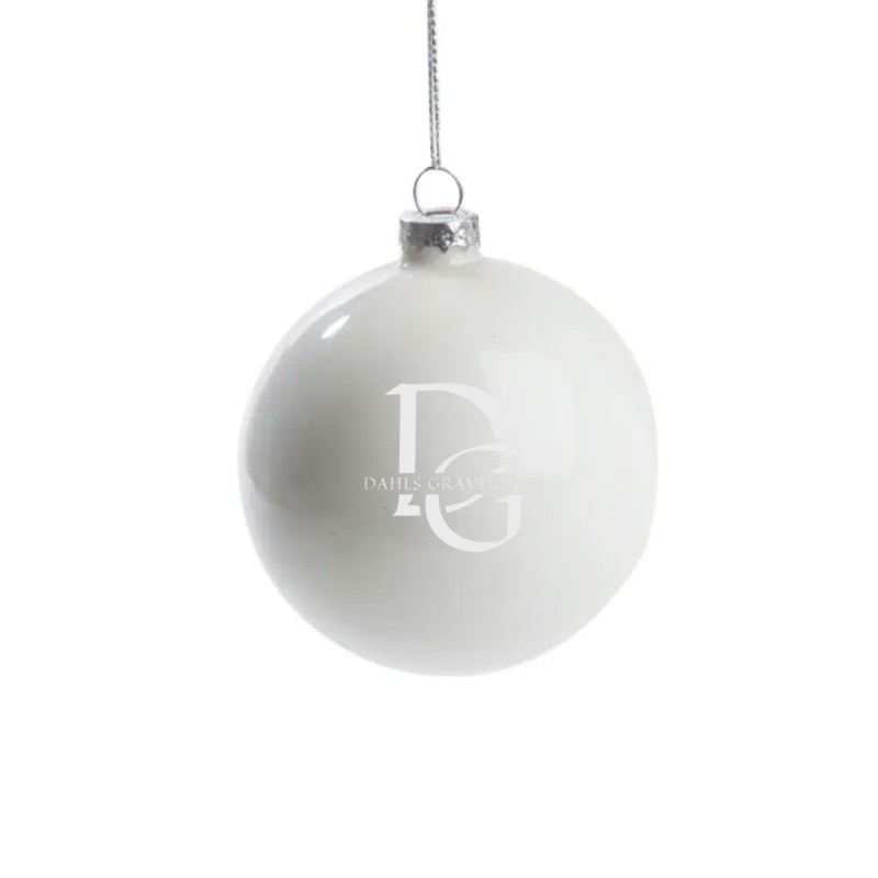 Super fin hvid blank julekugle med mulighed for personlig gravering. Materialet er glas og er rigtig fin på juletræet. Kuglen er 8 cm i diameter og med en tynd guld snor så den kan hænge. En rigtig sød gaveidé til når du skal på besøg til julefrokosten, mandelgaven eller som minde om en du har kær. Byd familien velkommen i julen med denne personlige julekugle. Findes også i mat.