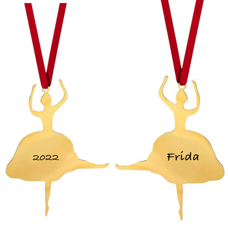 Ballerina ophænget måler 90 mm i højden og kan laser graveres på kjole med din egen tekst på begge sider Vi anbefaler alle skrifttyper til dette fine juleophæng og der kan ca være 40 tegn på hver side. Teksten bliver let sort og meget læselig. Giv den i gave til feks. dagplejemoren med barnets navn, som et evigt minde. Ophænget kan også bruges med din egen hilsen til en du har kær eller som et evigt minde om den føste jul. Juleophænget leveres i flot gaveæske så det er lige til at give som gave.