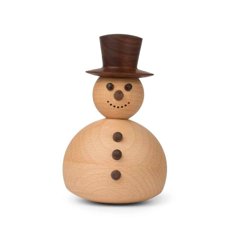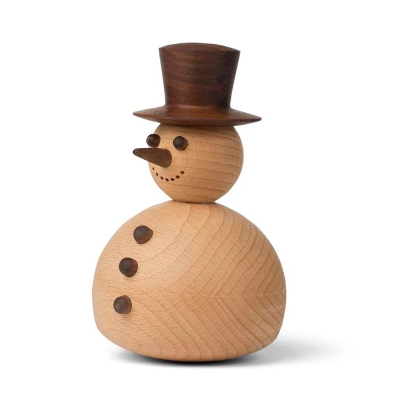Snemanden er Bøg, valnød og måler ca 9 cm i højden. Den kan lasergraves bagpå med en lille sød julehilsen. Vi anbefaler Ariel som skrifttype og max ca 20 tegn fordelt over flere linjer. Teksten vil blive brændt ned i træet og fremstå i let sort farve. Sne kan få legebarnet frem i de fleste mennesker. Sådan er det også med Snemanden.Dens søde udtryk – med hat, knapper og gulerodsnæse – minder én om alle de gange, man har været ude i sneen, tumle sig og bygge kæmpe snemænd, der aldrig fik den rigtige form. Leveres i pæn æske så den er lige til at give som gave.