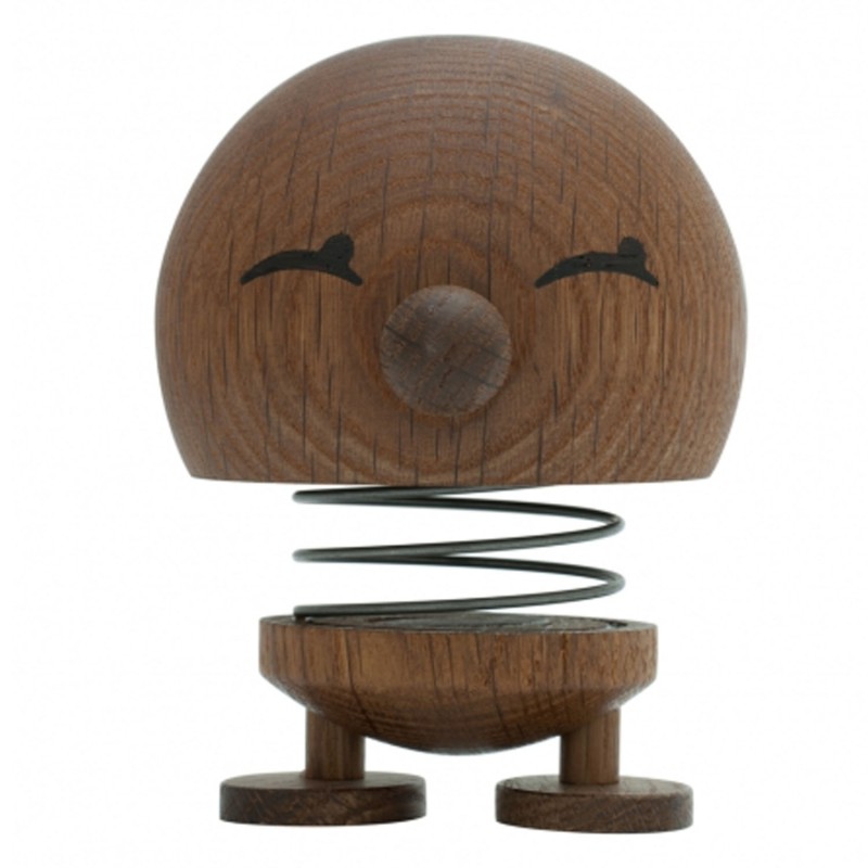 Den glade lille Hoptimist som er lavet i eg, kan lasergraveres på bagsiden med din personlige tekst. Teksten vil blive brændt ned i brændt ned i træet og teksten kan variere lidt i farve, alt efter hvordan træet er. Her anbefaler vi Ariel som skrifttype og ca 40 tegn fordelt på 3 linjer. Da træ er et naturmateriale kan der være knaster og områder med lysere eller mørkere træ, og vi kan derfor ikke garantere at produktet har det præcise udtryk som billedmaterialet viser. Den sjove lille figur er måler H: 13 cm x D: 10 cm og med de glade øjne og den lille tap på hovedet kan den gøre meget glæde i mange hjem. Den leveres i æske, så den. er klar som gav