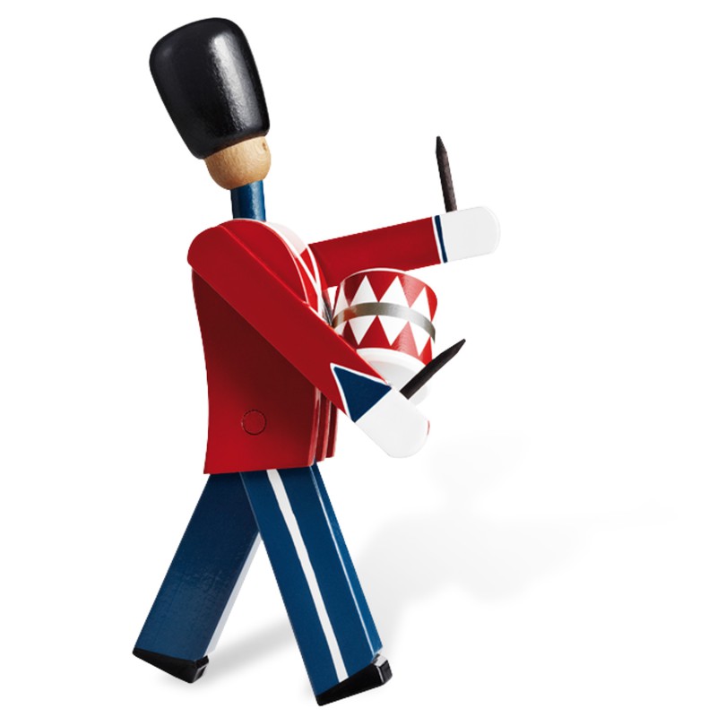 Flot Gardere i malet bøgetræ og med tromme. Garder er en ud af 4 og stå ret og klar til at spille trommer.Man kan næsten høre dem fra Amalienborg og børnene vil elske dem. Her kan du få lasergraverede bagpå ben og teksten vil blive brændt ned i træet og fremstå i let sort farve. Vi anbefaler Ariel som skrifttype og max 15 tegn pr ben. Leveres i original Kay Bojesen æske.