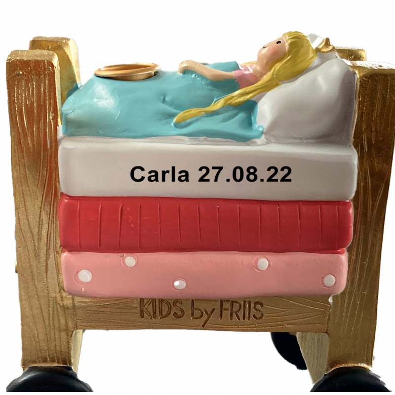 tlf. 20 33 76 60Eventyr tog til pige fra Kids By Friis er en sød fødselsdagstog med 5 dele samt tal fra 1- 9 år. I 2 af vognene kan der sættes et lille lys som gør fødselsdagstoget mere hyggeligt ved bordet.På øverste madras på vogn kan der skives en lille tekst. Teksten vil blive lasergraverede ned i materialet og her kan alle vores skrifttyper anvendes. Der kan ca være 20 tegn fordelt på 1 linjer. Der udover kan der sidde to små lys i fødselsdagstoget, og på seng og svane kan der påsættes tal. Det fine sæt kommer i æske, så det er klar som gave til dåb, fødselsdag eller til den helt rigtige lille prinsesse. Toget måler 17x45x6 cm.
