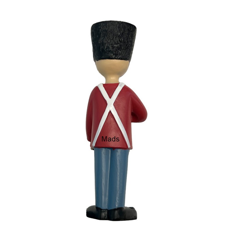 Ophænget er lavet i 100 % polyresin og har håndmalet motiv af en fin garder m. trompet. Det fine bordpynt er perfekt til bordpynt til den store dag hvor der skal fejres. Den måler 14x6x4 cm og kan lasergraveres med din personlige tekst på bagsiden som vist på billedet. Her kan der ca være 10 tegn med plads til navn og/eller dato på 2 linje. Mange af vores skrifttyper kan anvendes og Garder leveres i æske, så den er klar som gave.