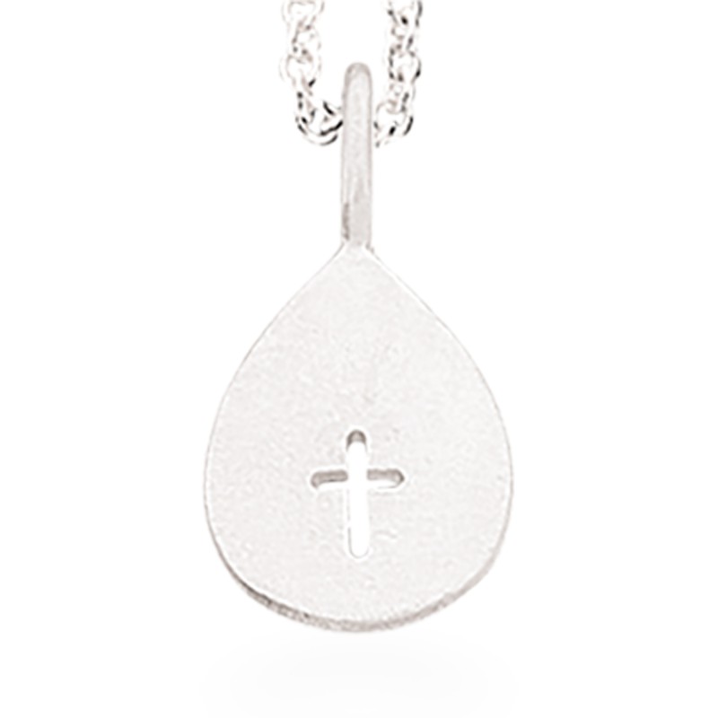 Et enkelt og fint sølv vedhæng med kors forneden. Sølv vedhænget måler ca 9 x 12 mm og kan lasergraveres med et enkelt navn eller dato.