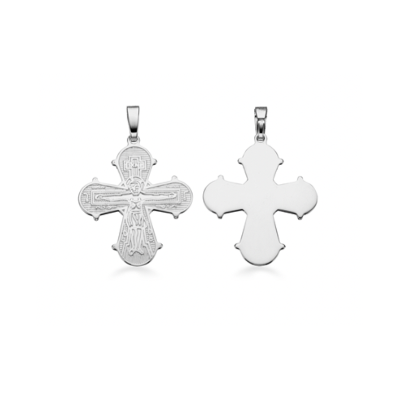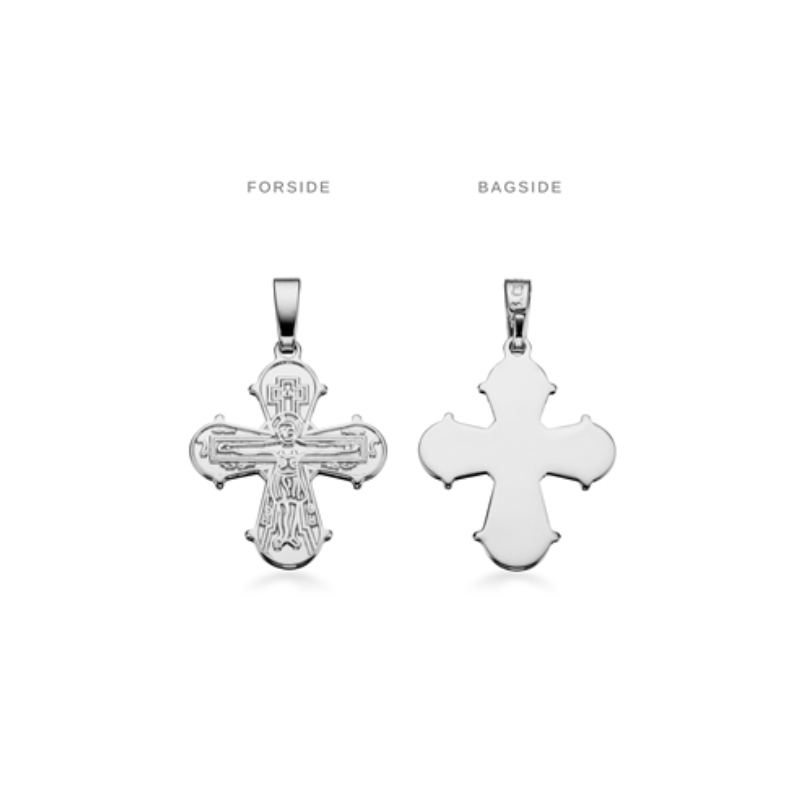 Dagmarkors måler H 21 mm. x B 19 mm og kan lasergraveres på bagsiden. Vi gravere vandret på kors. Her kan max være 15 tegn. Teksten vil fremstå i let sort farve og her kan alle skrifttyper anvendes. Leveres med 45 cm kæde i sølv.