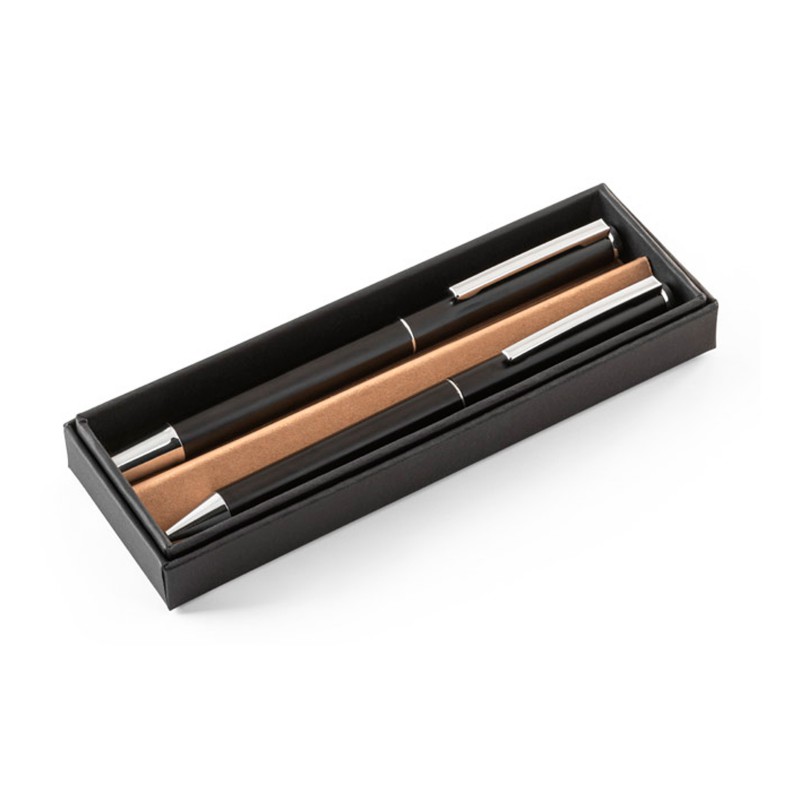 Gavesæt med kuglepen og rollerballpen produceret i genvundet aluminium