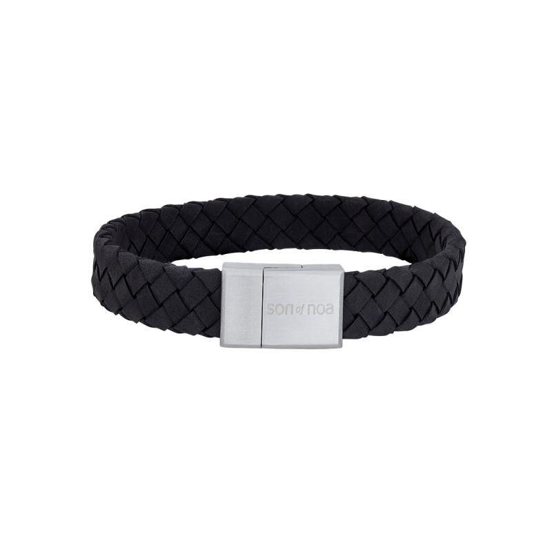 Dette læderarmbånd fra Nordahl Andersen's "Son of Noa"-serie er et klassisk og stilfuldt tilbehør, fremstillet i flettet sort kalveskind med et rustfrit stålspænde. Armbåndet måler 21 cm i længden og 12 mm i bredden, hvilket gør det til et diskret, men elegant valg. Spændet bærer "Son of Noa"-logoet og kan lasergraveres med op til 10 tegn, hvilket giver mulighed for at tilføje en personlig besked eller initialer. Vi anbefaler skrifttypen Arial for at sikre et klart og elegant resultat. Armbåndet leveres i en gaveæske, klar til at blive givet som en fin gaveidé.
