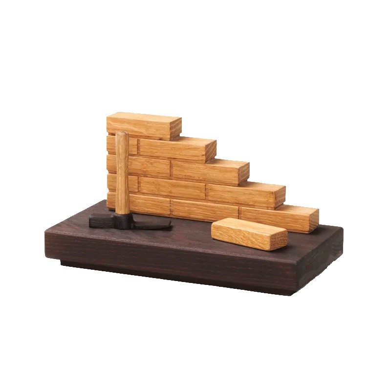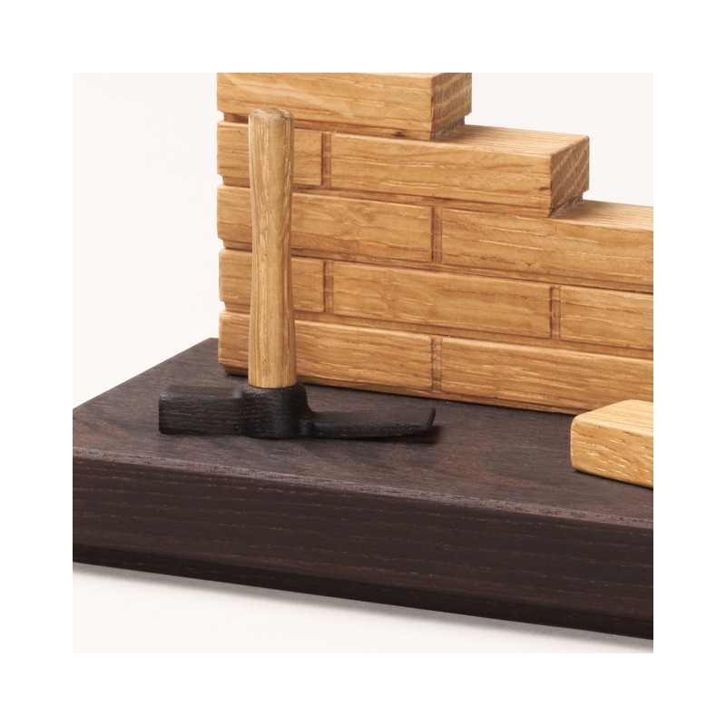En lille statuette, der repræsenterer murfaget, med en mursten og en murhammer og som er en dekorativ og mindeværdig gave. Den er lavet i eg og ask og har udskåret mursten og hammer og ligger i en mørk plade. I bunden af den løse plade er der skrevet Maya Soele, som er hende der har designet de flotte træ figurer. Den måler 9 x 18 cm og kan indgraveres på siden eller i bunden. Her kan der ca være 30 tegn fordelt på 2 linjer og teksten vil blive lasergraverede ned i træet og stå i samme farve. Det bliver læseligt, men kan ikke laves i farver. Her anbefaler vi Ariel som skrifttype.