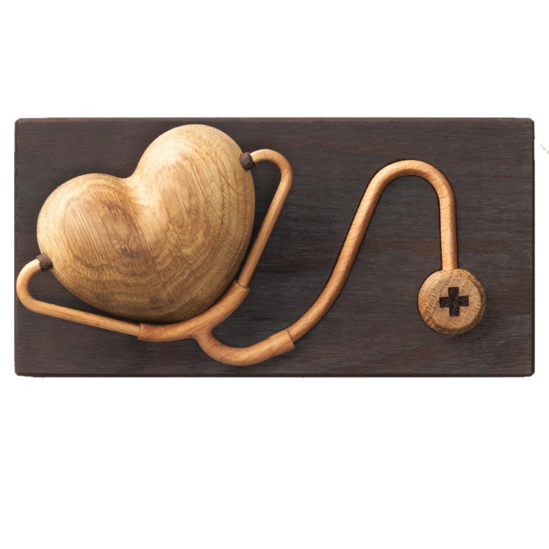 Flot og anderledes træ design til dig der har taget en erhversuddannelse eller måske fejre jubilæum som sygeplejerske. Den er lavet i eg og ask . I bunden af den løse plade er der skrevet Maya Soele, som er hende der har designet de flotte træ figurer. Den måler 9 x 18 cm og kan indgraveres på siden eller i bunden. Her kan der ca være 30 tegn fordelt på 2 linjer og teksten vil blive lasergraverede ned i træet og stå i samme farve. Det bliver læseligt, men kan ikke laves i farver. Her anbefaler vi Ariel som skrifttype.