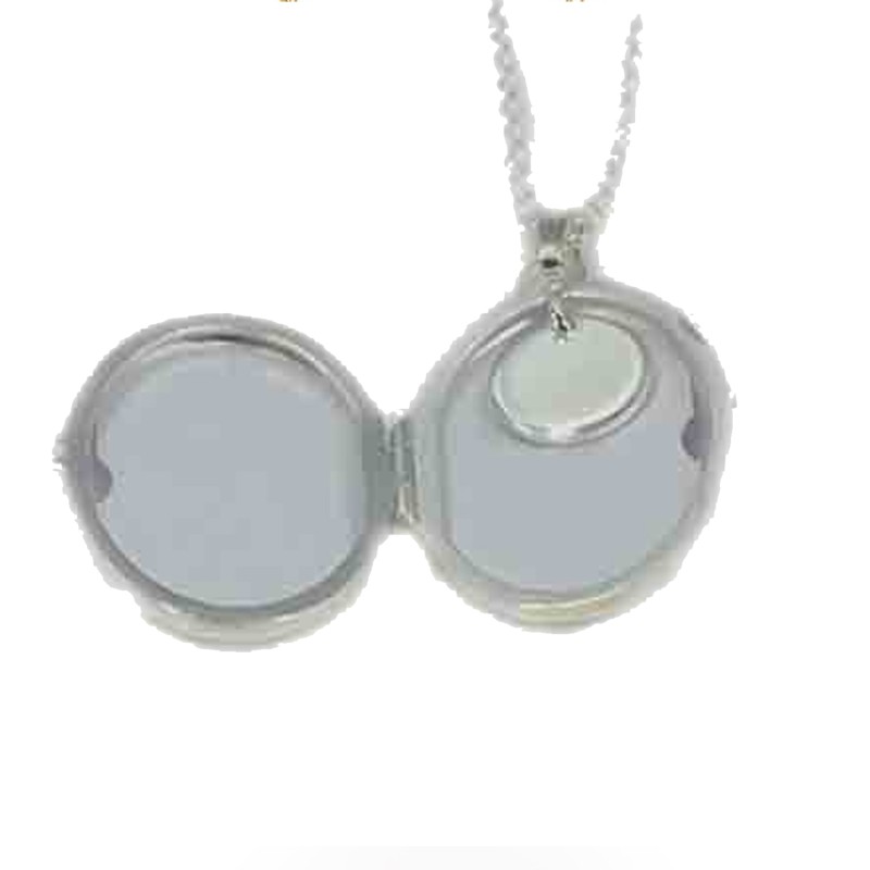 Indvendig er der monteret en lille plade, hvor der er mulighed for at skrive et par bogstaver.( max 3 tegn )Udvendig kan medaljonen graveres på begge sider, her kan du skrive en lille hilsen eller måske navnet på den der skal have medaljonen i gave.Teksten vil blive lasergraverede og fremstå i let sort farve.Vi anbefaler alle skrifttyper til denne medaljon. Leveres uden kæde.