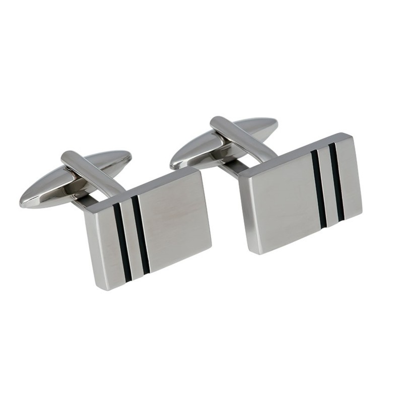 Stål manchetknappe med sort stribe.