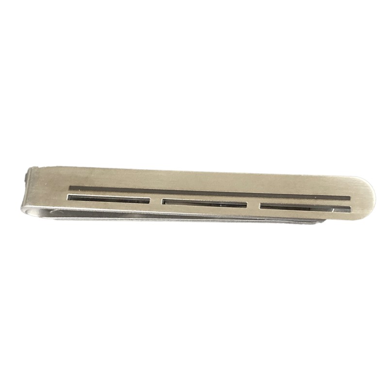 Her får du en stål slipsenål med små fine udskæringer i bund.