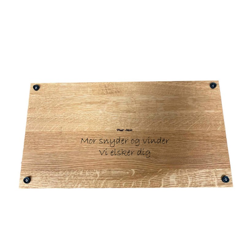Piet Hein har lavet en meget flot og lækkert spil for dem der gerne vil have design i hjemme og et spil man ikke behøver at pakke væk. Spillet er udført i røget Eg, kuglerne i mose-Eg Her kan vi skrive en sød hilsen, lave firmalogo på midt eller i bund. Teksten vil blive brændt ned i træet og fremstå i let sort farve. Teksten kan varierer alt efter træets natur. Her kan alle vores skrifttyper anvendes. Et meget flot gave til en rigtig gamer som leveres i æske. så det er klar som gave.