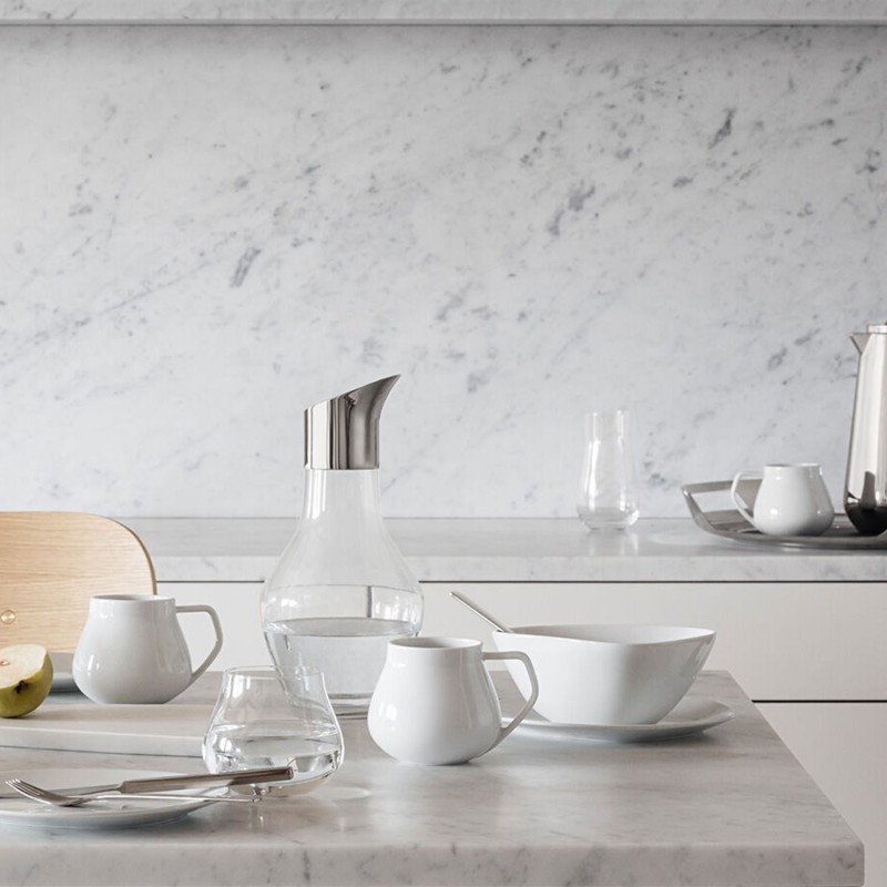 Den sanselige form er behagelig at holde om, og det enkle design indbyder både til servering af vand og drinks.Den ikoniske Sky kollektion er designet af franskfødte Aurélien Barbry for Georg Jensen.Inspireret af skyernes bløde linjer har han skabt en elegant kollektion af glas, tallerkener og bar tilbehør. Sky kollektionen forener minimalistisk design med gennemtænkt funktionalitet og er en af vores moderne designklassikere til bordet.