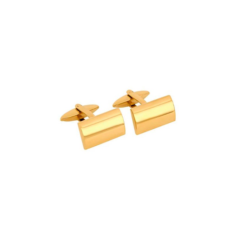 Manchetknapper i forgyldt rustfri stål. Manchetknapperne er i et aflangt firkantet look med en let buet overflade. De passer perfekt til ethvert mørkt jakkesæt eller habit. Manchetknapperne kan laser graveres med din helt egen tekst. Vi anbefaler max 10 tegn pr stk. Teksten vil fremstå i let sort farve og her kan du vælge en tekst på hver del.