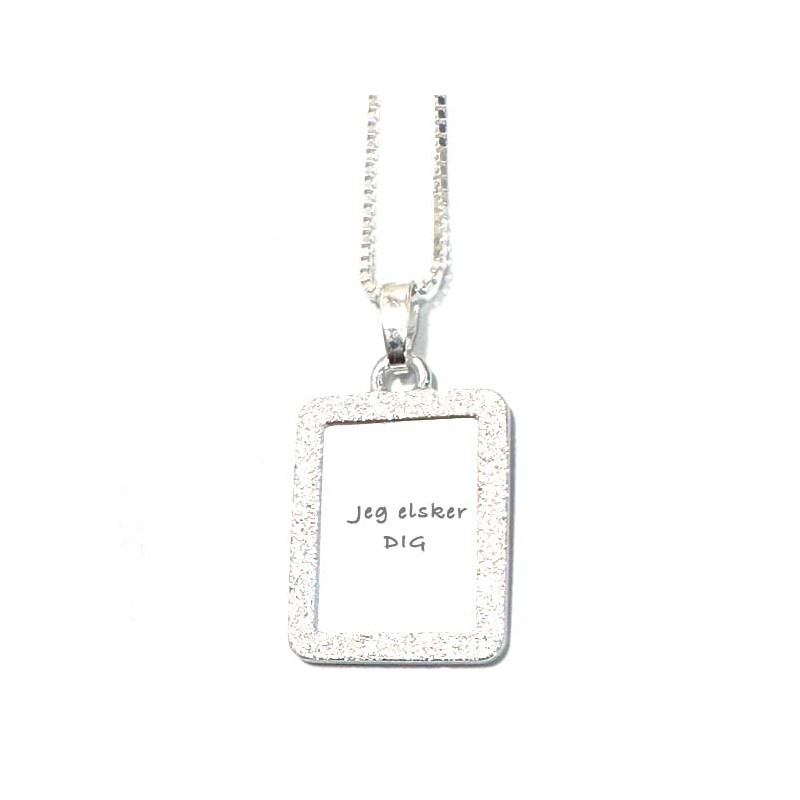 Din personlige tekst bliver graveret på forsiden af vedhænget, som vist på billedet.