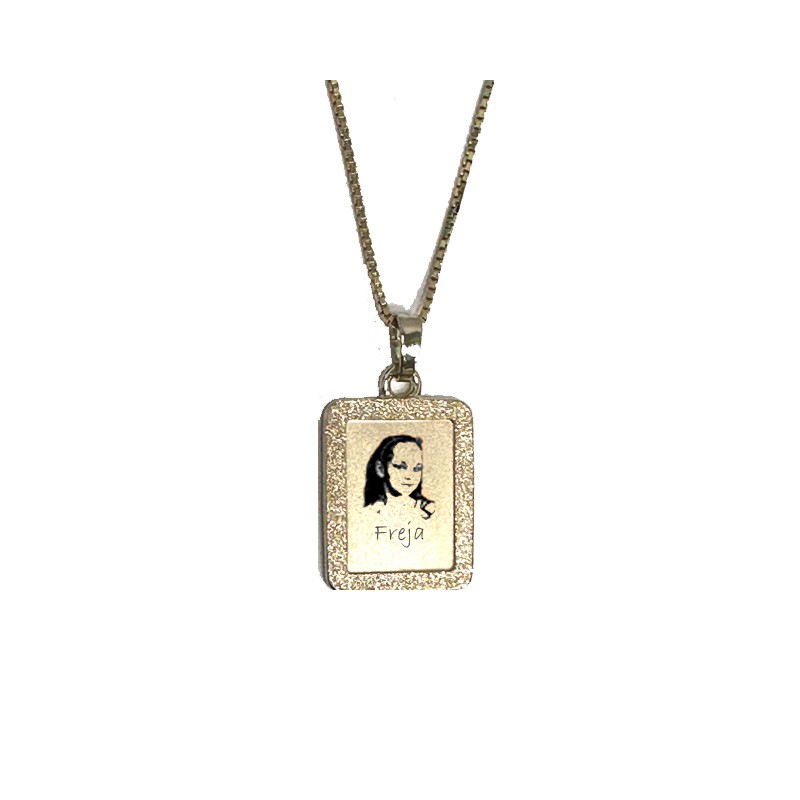 Ønsker du et elegant smykke med personlig gravering? Med dette smykke fra Andreas Daub, kan din helt egen tekst eller billede blive lasergraveret ind i smykket. Smykket måler 17x13 mm og hertil medfølger en 42 cm lang kæde. Smykket bliver leveret i en smykkeæske, klar til at blive givet i gave. Vedhænget af diamant effekt.