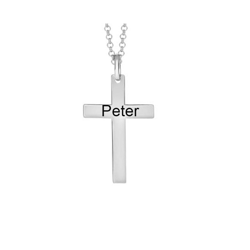 Dette flotte kors har en blank overflade. Korset måler 20 x 29 mm og leveres med 60 cm ærte kæde som kan lukkes ved 55 cm. Korset kan indgraveres med tekst "tværs" over, foran. Bagpå kors er der firmastempel. Vi anbefaler Ariel som skrifttype til dette kors. Stål korset er en del af den populære smykkeserie Son of Noa som har sit et flotte rå stil og passer ind til en hver mand som elsker smykke.