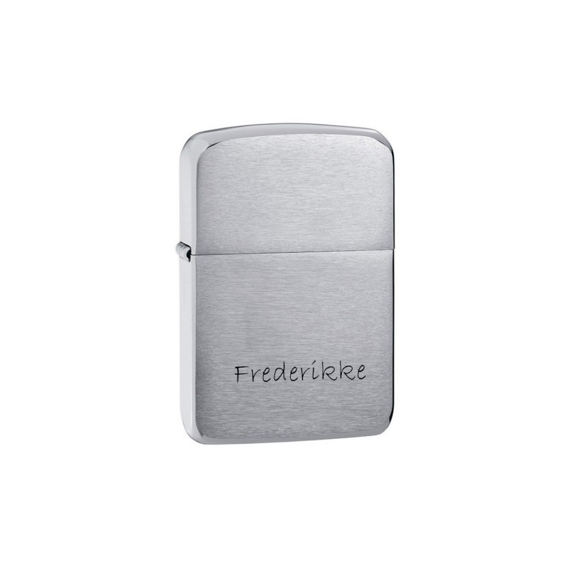Zippo lighter i chrom med børstet overflade - enkel og elegant. Her finder du en stilfuld lighter som passer til en hver lejlighed. Zippo lighteren kan indgraveres foran med en ønskede tekst eller navn samt dato - endda et personligt billede. Vi anbefaler Ariel eller Cosivia som skrifttype på denne lighter. Zippo lighteren måler 35 x 55 mm. Zippo lighteren leveres i original æske samt med logo tryk i bunden. Der er evighedsgaranti på denne lighter. Husk at købe Zippo Benzin med til lighter - da dette ikke er påfyldt ved køb.