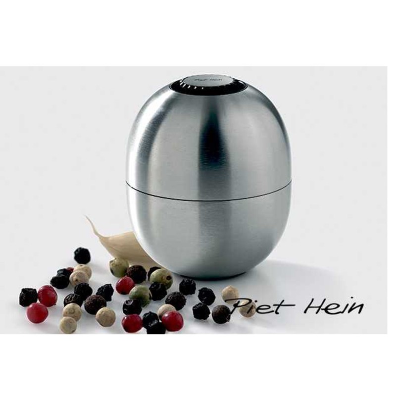 Den flotte og klassiske elipse formet peber kværn fra Piet Hein, er yderst elegant at have stående på et hver spisebord. Peber kværn er udført i mat børstet stål med lille Piet Hein logo i top af kværn. Peber kværn fra Piet Hein måler 80 mm i højden. Der er mulighed for lasergravering af firmalogo eller en lille hilsen rundt på salt kværnen. Teksten vil fremstå i sort. Vi anbefaler Ariel som skrifttype og ca 30 tegn peber kværnen påfyldes i bund med Peber. Her har du en Peber kværn som ikke drysser når du stiller den på bordet. Den leveres i æske, så den er klar som gave.