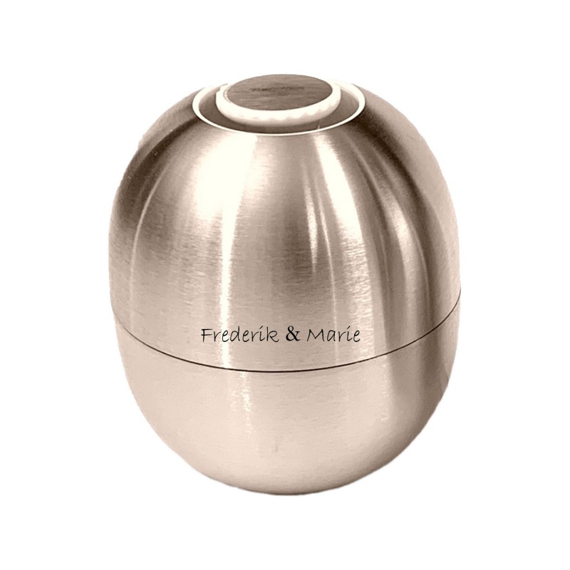 Den flotte og klassiske elipse formet saltkværn fra Piet Hein, er yderst elegant at have stående på et hver spisebord. Salt kværn er udført i mat børstet stål med lille Piet Hein logo i top af kværn. Salt kværn fra Piet Hein måler 80 mm i højden Der er mulighed for lasergravering af firmalogo eller en lille hilsen rundt på salt kværnen. Teksten vil fremstå i sort. Vi anbefaler Ariel som skrifttyper og der kan ca være 30 tegn. Salt kværnen påfyldes i bund med salt. her har du en salt kværn som ikke drysser når du stiller den på bordet. Leveres i æske, så den er klar som gave.