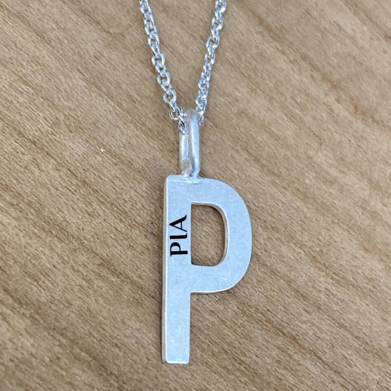 P bogstav i sølv er en enkelt og flot sølv bogstave vedhæng. Vedhænget kan lasergraves med egen tekst på siden og her kan der ca være 10 tegn. Teksten vil blive lasergraverede og fremstå i let sort farve. Her kan alle vores skrifttyper anvendes, vi vil dog anbefale Ariel som bliver mest læseligt. P-vedhænget leveres med kæde i 42 cm og måler 15 mm. Et flot smykke som leveres i smykkeæske så det er klar til at give som gave.