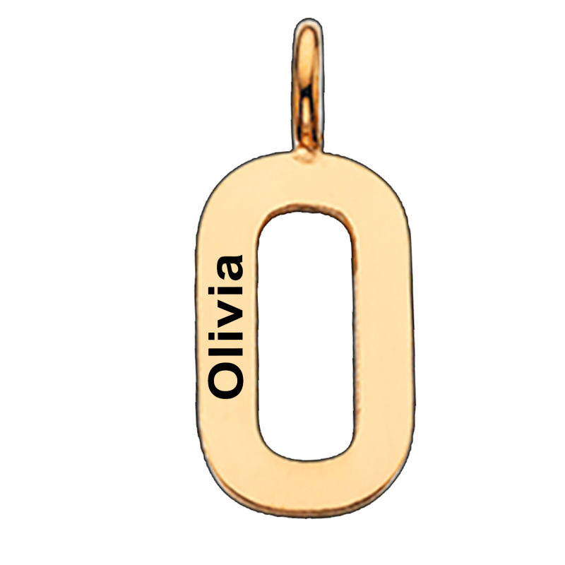 Et enkelt og flot bogstavs vedhæng i forgyldt sølv. O bogstavet kan lasergraveres med din egen tekst, på siden af O’et. Skriften vil fremstå i let sort farve og vi anbefaler ca. 10 tegn på dette vedhæng. Her bliver Ariel mest læseligt. O vedhænget måler ca. 15 mm i højden og leveres med 42 cm forgyldt kæde. Flot smykke vedhæng til en du holder af. Leveres i æske, så det er lige klar til at give som gave.