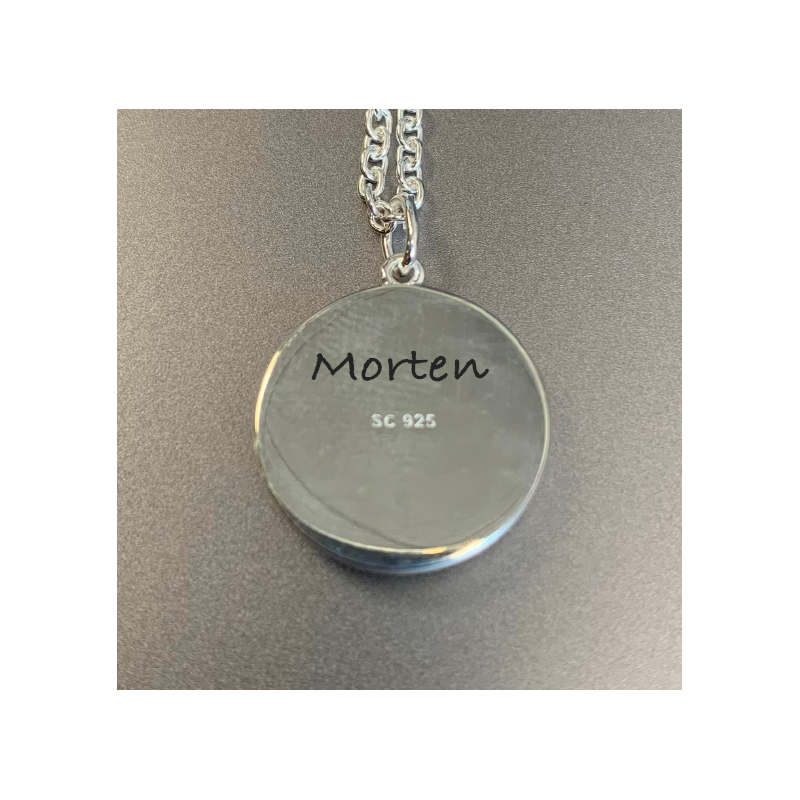 Virkelig flot sølv sølv smykke med Sort onyx på forsiden. Bagsiden er blank (udover stempel) og kan lasergraveres med din helt egen tekst. Her anbefaler vi alle skrifttyper og ca 10 tegn. Teksten vil fremstå i let sort farve. Det forgyldte vedhæng leveres med kæde og i fin æske så det er lige til at give som gave. Det perfekte smykke til dig der gerne vil have lidt der er anderledes.