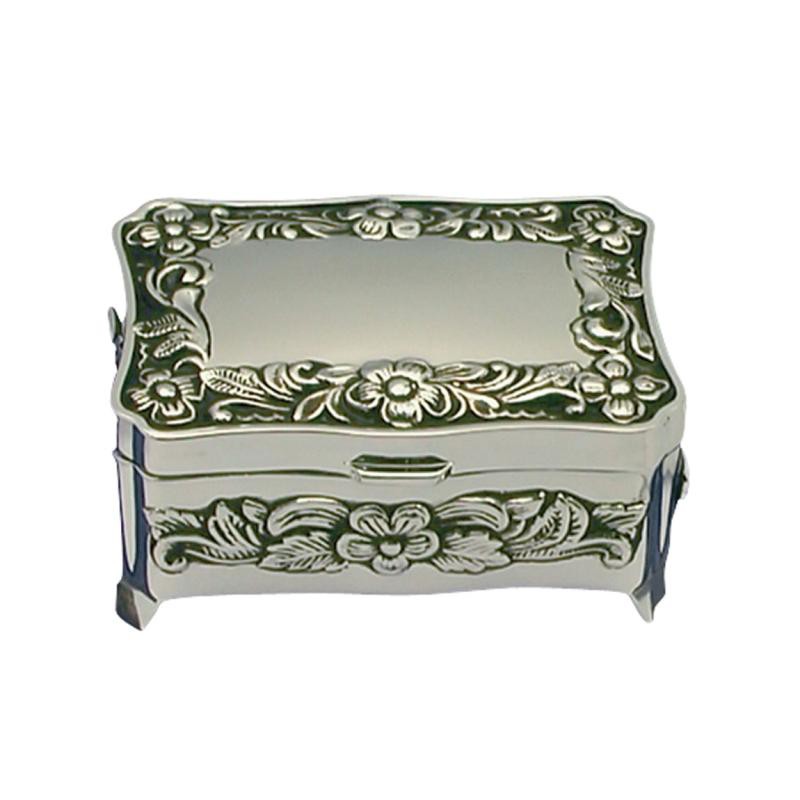 Smykkeskrin med indgravering. Elegant smykkeskrin til dine fine smykker. Smykkeskrinet er i krom har en flot sølv blank overflade. Det måler 55 x 80 mm cm kan indgraveres med din personlige tekst. Teksten vil blive lasergraverede og fremstå i sort farve. Her kan alle vores skrifttyper anvendes og ca 40 tegn. Et fint lille smykkeskrin som kan give måske med et lille smykke i.