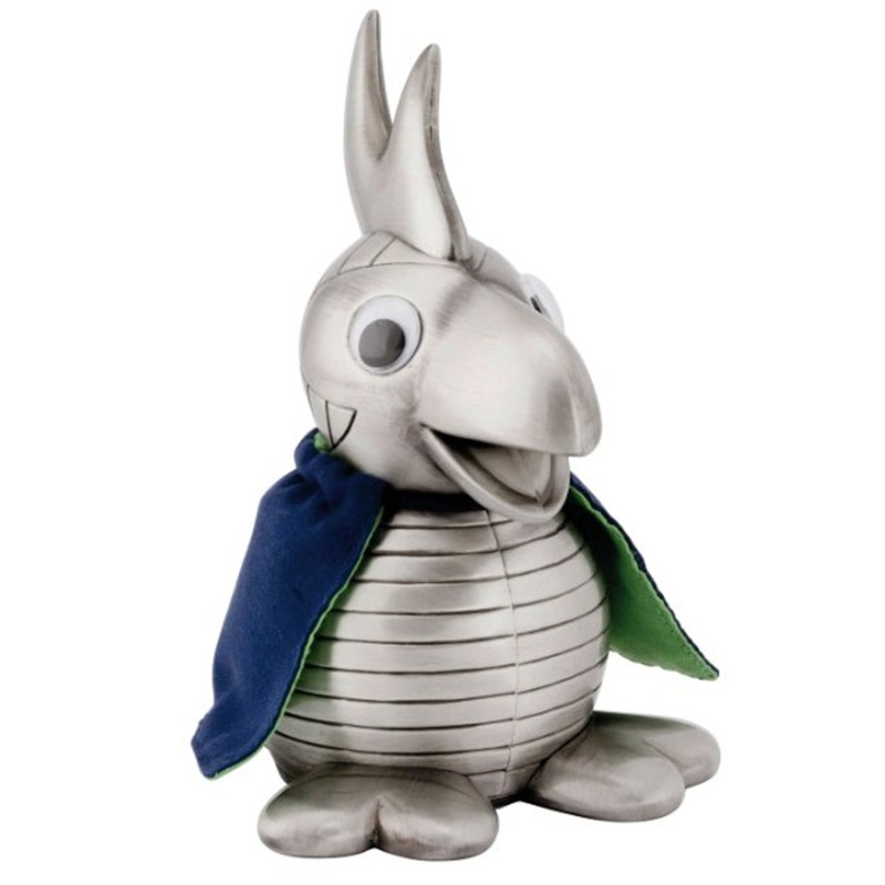 Sjove Andrea med hendes blå/grønne kåbe. Andrea kan lasergraveres foroven på hovedet. Graveringen vil fremstå i let sort farve og her anbefaler vi max 20 tegn. Her er Ariel den bedste skrifttype at anvende. Andrea måler 140 x 100 mm og leveres i fin æske, så den er lige til at give som gave. Det fortinnet look gør at sparebøssen ikke skal pudses og kan holde i mange år.