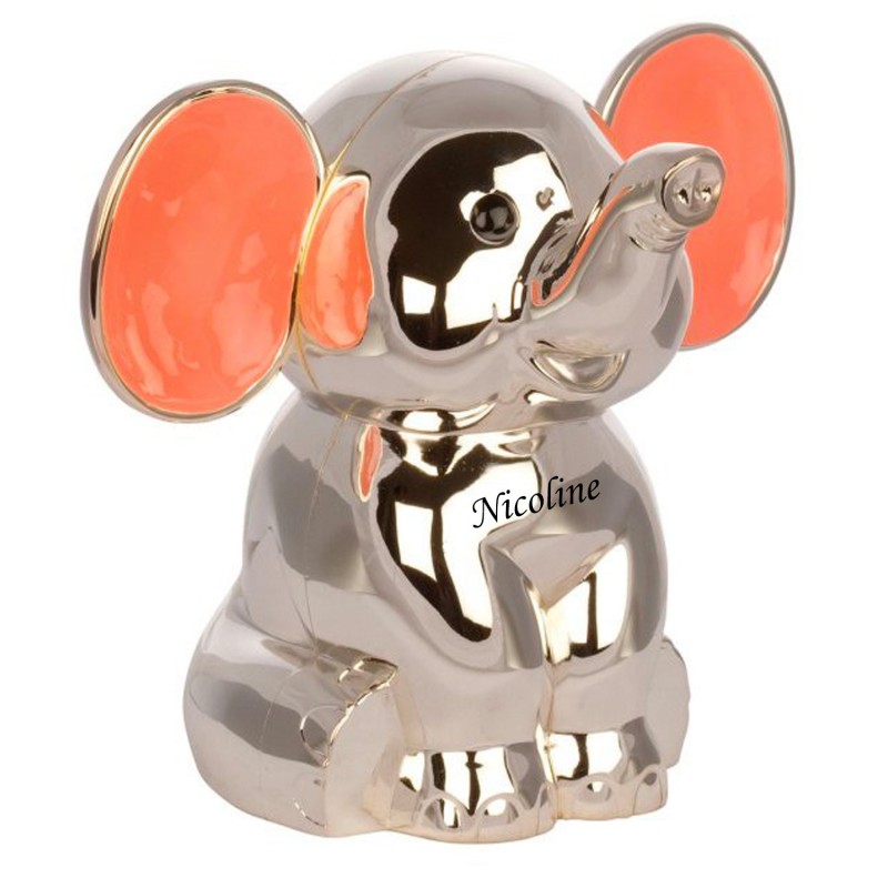 Dette er en sjov sparebøsse, som kan give smilet frem i en hver. Elefanten kan lasergraves med din personlige tekst på maven og teksten vil fremstå i let sort farve. Her anbefaler vi alle vores skrifttyper og ca 20 tegn fordelt på 2 linjer. Den måler 125 x 130 mm og leveres i fin æske, så den er klar til at give som gave. Sparebøssen er forkromet, der gør den ikke skal pudses.